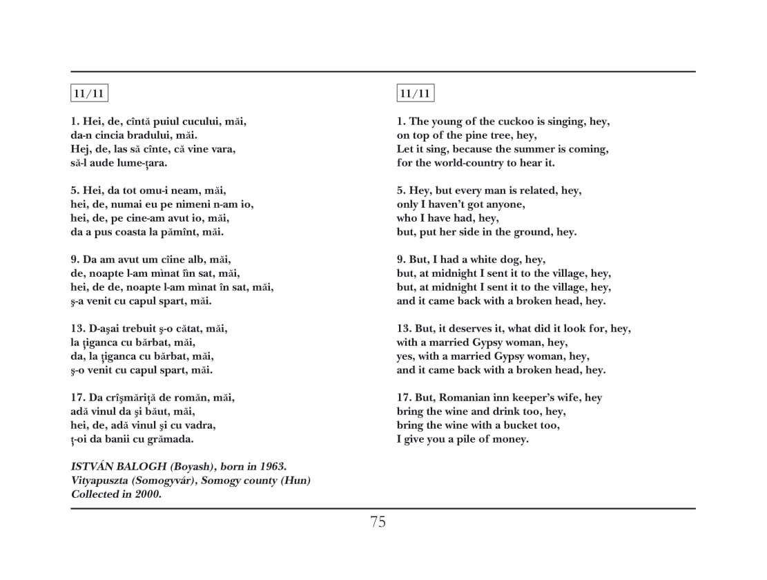 CD 11/11. Hei, de, cîntă puiul cucului, măi - Hej, de, énekel a kakukkfióka, hej (asztali ének)
