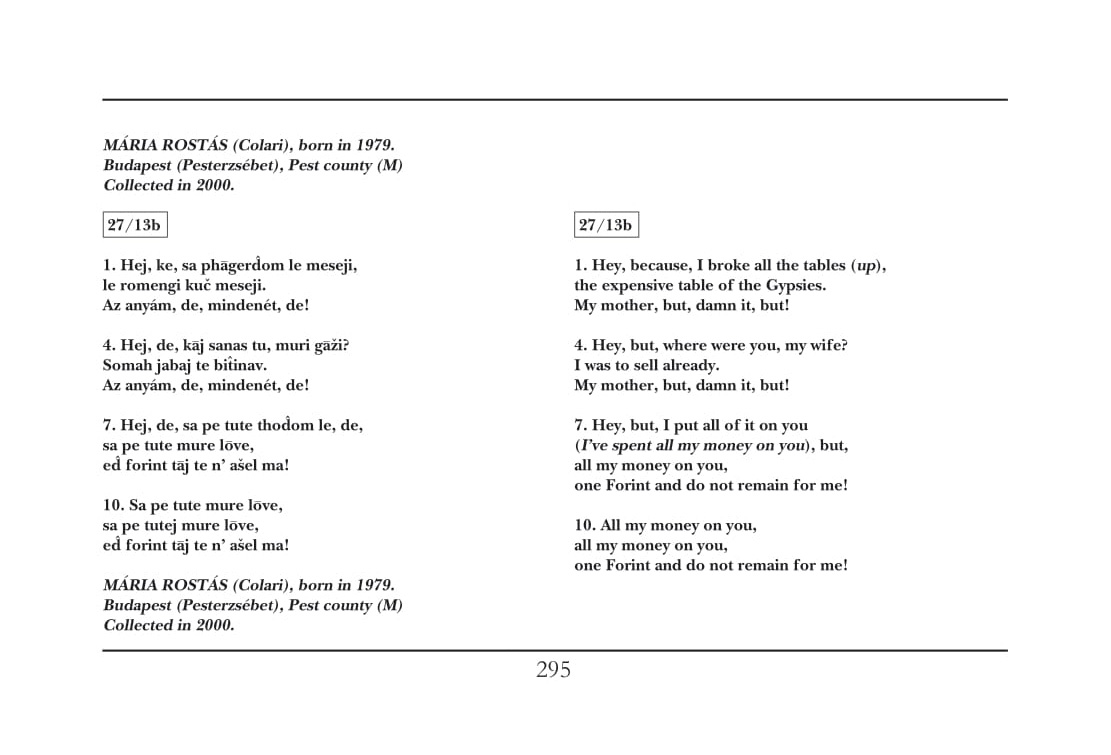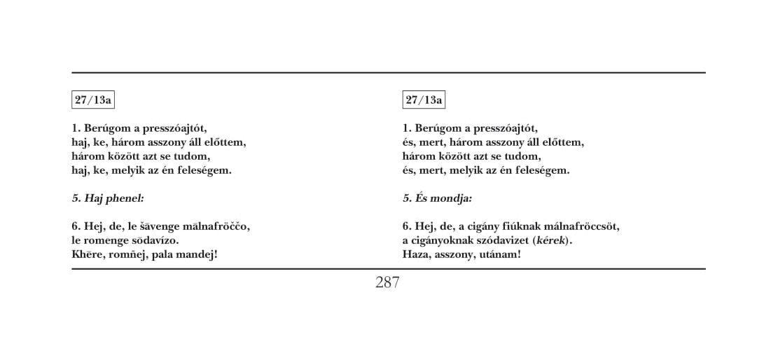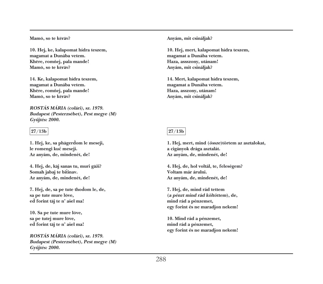 13/B Hej, de, sza phagergyom le meszeji 1’ 21“ Hej, mert, mind (össze)törtem az asztalokat (asztali ének)